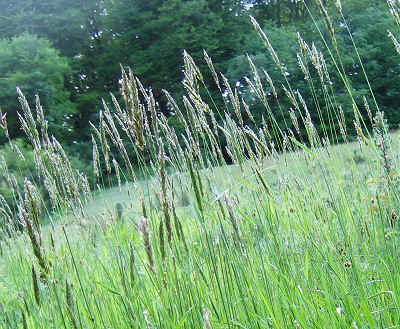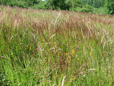 more characteristic of heaths have also colonized the project site. These include Sweet Vernal Grass (left), Bristle Bent and Purple Moor Grass. |