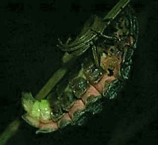 Grasshoppers and Bush-crickets are another feature of meadows. Grasshoppers are almost all completely herbivorous, feeding mainly on grasses. As their name suggests, Meadow Grasshoppers are likely to be one of the commonest species. With their cryptic colouration, grasshoppers are difficult to spot amongst the grasses. Their chirping signals to each other, made by rubbing their hindlegs and forewings together, advertise their presence and provide part of the background hum of the meadow. Other insect herbivores include bugs such as the frog-hoppers, probably more familiar to most of us as 'cuckoo spit', which is the foam surrounding nymphs of these bugs. The foam prevents them from drying out and gives them some protection from predators. Moving down towards soil level, heaps of soil on the meadow surface might betray the presence of moles, feeding on the rich earthworm populations in meadow soils. Alternatively, larger heaps may indicate the presence of Meadow Ants (Lasius flavus). These ants farm the field in their own way by cultivating aphids. The ants shelter and protect root-feeding aphids, which in return excrete honeydew which the ants feed on. The soil itself will also contain a number of other invertebrate species which feed on the roots of the meadow plants. These include animals such as leatherjackets and wireworms, which are the larvae of Crane flies, and Click Beetles respectively. There are any number of invertebrate predators in the meadow, from spiders, to large numbers of ground beetles.