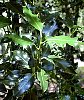 The Holly tree is characteristic. An evergreen, it has dark green, shiny leathery leaves with undulating margins edged with sharp spines. Occasionally, the upper leaves or even all the leaves lack the spines and lobes. Holly can grow up to 20 metres in height but is also found as a leafy shrub growing close to ground level where its spines prevent it from being grazed by animals. Its bark is smooth and grey. Holly produces tiny white flowers in May. By July the green berries have formed which ripen to the familiar red berry by September. These often provide a valuable food supply to birds such as Thrushes during cold winter months. Holly often grows as an understorey species in oak or beech woods. |