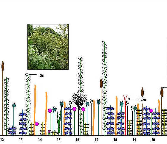 The diagram above clearly shows the plant zonation patterns across the wetland.There is a very narrow dry land zone on the eastern section